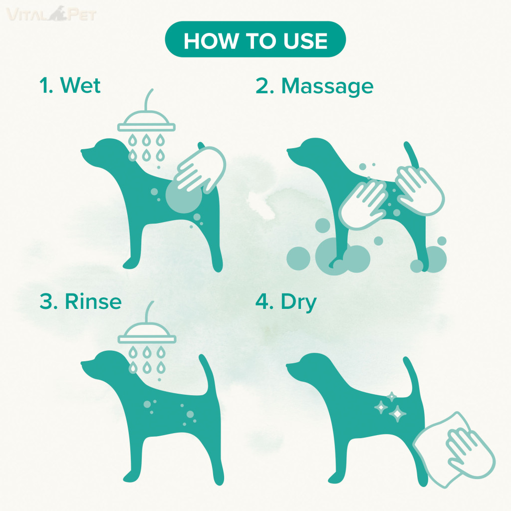 Nedvesítse meg a bundát meleg vízzel és gyengéden masszírozza a sampont a szőrzetbe, ameddig habot képez. Alaposan öblítse át, majd szárítsa meg a bundát.